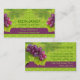 Conception carte de visite personnalisable avec grappes de raisins frais pourpres avec gouttelettes d'eau sur arrière - plan vert avec vignes feuille motif, adapté à ceux qui produisent et vendent des fruits, agriculteurs, fruitiers, distributeurs, grossistes, commerçants, agents commerciaux, fournisseurs de fruits frais, épiceries...