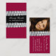 Faites une grande impression avec ce carte de visite élégant. Comportant une rangée d'arrière - plan et de double de framboise des diamants, cette les cartes de visite est sûr de créer un stir. Au lieu du tir traditionnel de couronne, employez un tir de profil pour ajouter plus de caractère ! Grâce *Special à l'eau-de-vie fine Wendler, Mme Alaska Etats-Unis 2011 !