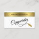 Les caractéristiques de conception ce de redacteur publicitaire de carte de visite une bande d'effet d'or/ruban sur une carte blanche avec la belle écriture de "redacteur publicitaire" et la graine d'une encre de fantaisie parquent. Ce carte de visite convient à des affaires indépendantes de redacteur publicitaire ou de rédaction publicitaire. L'effet d'or et l'écriture noire créent une conception élégante et élégante simple et projettent une image d'un professionnel expérimenté.