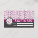Carte de visite magenta et gris sophistiqué de référence de salon. Carte de visite fait sur commande de référence avec une promotion de référence pour récompenser vos clients pour se référer leurs amis. La carte a un plan et une couleur sophistiqués de conception d'or. Grand pour lancer votre salon ou styliste et pour augmenter votre liste de client. Entrez dans votre propres promotion, dénis de responsabilité et information de l'entreprise. Perfectionnez pour un salon, un coiffeur, un styliste, un salon de beauté, un esthéticien, ou un salon de mani et de pédicurie.
