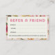 Spa ou carte de visite de référence de thérapeute de massage. Carte de visite fait sur commande de référence avec une promotion de référence pour récompenser vos clients pour se référer leurs amis. La carte a une lumière moderne et une conception florale. Grand pour lancer vos affaires de thérapie de spa ou de massage et pour augmenter votre liste de client. Entrez dans votre propres promotion, dénis de responsabilité et information de l'entreprise. Perfectionnez pour un spa, un thérapeute de massage, un acupuncteur, ou un magasin de herboriste.