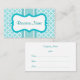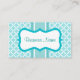 Un élégant motif aqua décore ce carte de visite de style rétro. Customisez ce carte de visite de rendez-vous pour répondre à vos besoins. Ajoutez ou supprimez des informations, changez le style de police, la taille de police, etc...Le design est de l'art original. Utilisez cette carte de rendez-vous design pour une auberge, Bed and Breakfast, B&B, Salon, spa, salon de coiffure, cosmétologiste, salon de ongles, dentiste, entreprise, etc...
