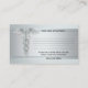 Un élégant carte de visite à rayures moderne avec un effet argent et une image d'un caducée. Parfait pour un professionnel de la santé et avec l'option d'utiliser comme carte de rendez-vous.