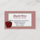 Grand carte de visite de professeurs de regard, avec un arrière - plan checkered rouge foncé et blanc, sur l'avant de la carte. Un secteur blanc des textes, bordé avec une frontière verte semblante de relief, a une pomme rouge juteuse décorer en bas à gauche le faisant le coin. Le dos de la carte est conçu comme carte de rendez-vous. Tout le texte est personnalisable pour indiquer ce que vous voulez. Modèle intéressant de carte de visite pour des professeurs et des tuteurs.