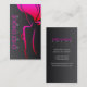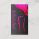 Le carte de visite unique de salon comportant dessin au trait d'une femme avec de grands cheveux et colorized à magenta et rouge lumineux, arrière - plan est couleur grise de gradient. Entièrement personnalisable, remplacez juste le texte fourni par votre salon, spa ou toute autre information de services aux entreprises.
