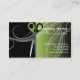 La conception verte et noire de ciseaux avec des cheveux tourbillonne à l'arrière-plan. Ce carte de visite élégant et unique convient à des affaires de salon de coiffure ou à un coiffeur. Sentez-vous libre pour me contacter si vous avez besoin de l'aide personnalisant votre carte de visite ou si vous voudriez demander une conception qui améliorerait le costume vos affaires.