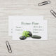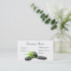 Le carte de visite avec les pierres noires de thérapie et la feuille verte avec de l'eau se laissent tomber