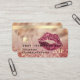 Carte de visite de style carte de crédit glamour avec des lèvres rouges bordeaux audacieuses sur un fond mauve scintillant élégant. Veuillez noter que les éléments pailletés et holographiques sont simulés.