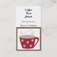 Une carte unique avec une tasse à café rouge avec du café chaud fumant et une bordure autour du design. Customisez avec toutes vos informations d'affaires comme vous le souhaitez.
