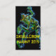 Épouvantail crânien hanté de corneille rampant dans la nuit et effrayant tout le monde avec ses yeux démons, crâne à la main et vue effrayante! Le design illustré présente des tons vibrants de bleus florescents, de verts et d'oranges.
