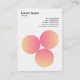 Modèle de carte de visite avec un motif géométrique attrayant à trois cercles avec dégradés de couleur. Nom de l'entreprise, type d'entreprise et adresse sur le devant avec nom, titre de l'emploi, téléphonie, adresses web et e-mail sur le dos, avec la même disposition. Un design géométrique abstrait et pointu, adapté à de nombreux types d'entreprises et d'utilisations.