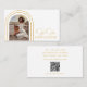 Design Modern Script Photo QR Code Photographie Photographe Carte de visite dispose d'un script doré élégant et élégant avec votre photo préférée dans des arcs dorés avec vos détails d'affaires et le site Web professionnel personnalisé QR code au verso. Au verso, vous trouverez vos coordonnées personnalisées. Conçu par © Evco Studio www.zazzle.com/store/evcostudio