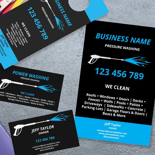 Conception carte de visite professionnelle - Argent à laver la pression et l'effet de vaporisateur d'eau de parties scintillant pour vos services de lavage de pression.