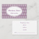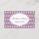 Une dentelle comme un motif décore ce carte de visite de lavande poussiéreux. Customisez l'information pour répondre à vos besoins. Le design est de l'art original. Utilisez ce carte de visite pour une boutique, des modifications, couture, tricot, salon, cosmétologiste, mode, vêtements, fleuriste, antiquités, wedding planner, design d'intérieur, salon à ongles, spa, rendez-vous, etc...