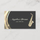 Carte de visite avec une image vectorielle saxophone et un motif doré classe.