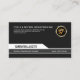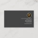 Au verso, à un arrière-plan gris-foncé, tous vos détails sont au mur droit de la carte. Au dessus même, il y a le logo facultatif familier d'icône d'or de faux. Sous lui, est vos détails d'affaires suivis du tagline de slogan. Si vous décidez de télécharger une photo au lieu d'un logo, les dimensions sont le pix 1.000 x 1.000.