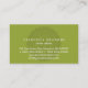 Un carte de visite qui est sûr d'obtenir l'attention. A napperon-comme l'ornement dessine le téléspectateur dans le centre de cette carte avec un type propre traitement proposant un environnement serein. Un vert de chaux est employé sur le dos avec l'ornement répété dans un léger transparent au-dessus de lui. C'est la carte parfaite pour un salon ou un spa, un thérapeute de massage ou un professionnel de santé, ou un magasin de détail se concentrant sur les cadeaux, l'habillement ou les accessoires. Disponible dans des couleurs alternatives avec les produits assortis.
