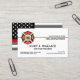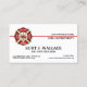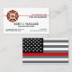 Un pompier professionnel, élégant et sur mesure contact / cartes de visite personnalisés avec le drapeau de pompier noir et blanc au verso, et un badge de croix maltaise classe et une fine ligne rouge sur le devant.