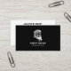 Logo de coupe de cheveux blanc pour hommes avec texte personnalisé en blanc sur un arrière - plan blanc et couleurs inversées sur le côté arrière de la carte.