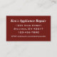 réparateur d'appareil avec une boîte à outils. Ce carte de visite a de nombreuses utilisations pour des hommes, des plombiers, des électriciens ou des réparateurs d'appareils. Composé de plusieurs couleurs différentes, toutes les couleurs, y compris l'arrière - plan et les hommes uniforme et casquette, peuvent être customisées gratuitement pour votre jeu de couleurs. Contactez-moi à mshake5918@yahoo.com pour un service rapide.