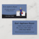 réparateur d'appareil avec une boîte à outils debout devant un lave-linge et un sèche-linge. Ce carte de visite a de nombreuses utilisations pour des hommes, des plombiers, des électriciens ou des réparateurs d'appareils. Composé de plusieurs couleurs différentes, toutes les couleurs, y compris l'arrière - plan et les hommes uniforme et casquette, peuvent être customisées gratuitement pour votre jeu de couleurs. Contactez-moi à mshake5918@yahoo.com pour un service rapide.