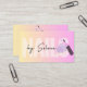 L'arrière - plan en dégradé vibrant passant du jaune au rose reflète un sens de créativité et d'énergie, ce qui le rend attrayant. L'illustration d'une bouteille de vernis en haut met en évidence un lien avec la beauté et le glamour. Ce qui rend ce carte de visite spécial est son parfait mélange de fonctionnalité et d'esthétique.Chaque élément de la carte est soigneusement conçu pour véhiculer le professionnalisme et le style, ce qui le fait ressortir dans une pile de cartes de visite.