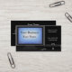 Un design graphique original d'un écran d'ordinateur, d'un ordinateur portable, d'une boîte à outils et d'outils à main par l'artiste et designer Charmaine Paulson sur un carte de visite de réparation informatique. La carte a des modèles pour votre personnalisation.