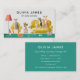 Un carte de visite de soins pour animaux de compagnie. Parfait pour un promeneur de chiens, un pensionnaire, un gardien de chiens ou une garderie de chiens. On y voit une caricature mignonne et amusante représentant des chiens et des chats dans un salon de garderie. Personnalisez-vous en ajoutant vos coordonnées commerciales et de contact à l'avant et à l'arrière.