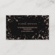 Un pulvérisateur moderne et élégant bronze le carte de visite avec la typographie moderne de brosse de style de lettrage de main dans la feuille d'or rose de faux sur des éclaboussures des confettis d'or de rose avec l'arrière - plan noir personnalisable.