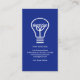 Au-dessus, dans une couverture bleue similaire, le logo de l'ampoule blanche est en haut suivi de votre nom prestigieux, de vos coordonnées et d'une option de slogan.