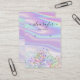 Porte-oreille en calligraphie design moderne avec effet de feuille holographique Unicorne simulé, et deux "marqueurs" de trous imprimés pour vos bijoux faits main (veuillez noter que ce ne sont pas des trous réels).