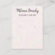 Un design moderne et élégant avec un script d'écriture chic pour votre nom personnalisé. Un design minimaliste avec des éléments de trou d'oreille réglables et du texte en option. Personnalisez l'avant de la carte avec votre nom et votre titre personnalisés. L'envers avec les coordonnées de votre entreprise. Option de modification supplémentaire sur la page du produit.