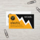 A white lightning demarcates an upper dark layer against its yellow counterpart. At the top of the card you have your prestigious name. To its left is a gold letter-e home cable logo you can use. This is followed by the business name "electric" which you can change. Contact details or captions are placed in "electrical symbol" buttons near the base.