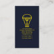 Au-dessus, dans une couverture bleue similaire, un logo d'ampoule jaune d'électricien est au sommet suivi des coordonnées et deux options de slogan pour faire de la publicité pour votre entreprise.