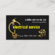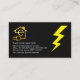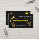 Une superbe couverture en granit noir présente un design d'ampoules en or qui porte votre nom d'entreprise "service électrique". En haut, vous trouverez votre nom prestigieux à côté du titre du poste avec le contact téléphonique près de la base. Sur le dessus, les détails de la carte sont sur le côté gauche avec un logo lettre-e or que vous pouvez utiliser placé en haut. Après cela vient votre nom prestigieux, les coordonnées et une légende de slogan que vous pouvez changer. À droite se trouve un éclair jaune qui met en évidence les détails de votre carte. Une grande carte créative pour les électriciens à utiliser.