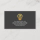Sur une couverture gris foncé, le logo de l'ampoule dorée est en haut, suivi de votre nom prestigieux, des coordonnées et d'une option de slogan pour annoncer vos services.