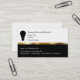 Cartes de visite électriciens classiques au design intelligent qui comprend un symbole d'ampoule, élément de design doré, texte que vous pouvez customiser, et deuxième côté vierge que vous pouvez utiliser pour ajouter tout ce que vous voulez puisque l'impression recto-verso est incluse.
