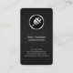 Ce design carte de visite électricien certifié puissant et élégant présente une texture grunge noire foncée subtile dans l'arrière - plan. La partie supérieure de la carte a une icône chrome de taille moyenne d'une prise électrique. Votre nom et votre titre apparaissent au milieu, en lettres claires et faciles à lire, tandis que vos coordonnées apparaissent sur la partie inférieure de la carte en lettres plus petites mais propres et lisibles. Parfait pour les réparations à domicile, les métiers spécialisés, les forgerons, la construction, technique, générale, les thèmes administratifs, mais peut être utilisé pour presque n'importe quelle entreprise ou industrie.