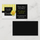 Carte de visite élégant, avec une conception rayée jaune et blanche lunatique du côté gauche, avec avec un secteur encadré pour la raison sociale qui a une jolie fleur rose là-dessus. La région des textes du côté droit de la carte est noir solide. Customisez cette grande carte de regard pour vous-même, changeant le style de police, des couleurs, et les tailles pour adapter à vos goûts, ajoutent plus de gisements des textes sur le dos si vous voulez.
