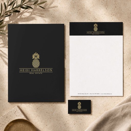 Elegant Golden Pineapple Logo Business SuiteConçu par Laurie F.