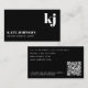 Carte De Visite Elegant Black White Minimalist QR Code Monogram