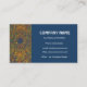 Carte de visite design avec un motif abstrait de tourbillons dans les tons orange, jaune et vert, avec lettrage blanc sur un arrière - plan bleu foncé. Prêt pour vous à customiser avec vos propres détails.