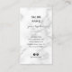Belle coiffure design carte de visite avec cheveux à texture fausse métallique et or rose et argent, ciseaux, arrière - plan en marbre blanc et police calligraphie élégante.