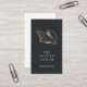 Les élégants cartes de visite verticaux pour toute occupation disposent d'une coquille de conque tropicale en fausse feuille de cuivre sur un arrière - plan noir souple riche avec deux lignes de texte personnalisé en blanc. Customisez le dos avec vos coordonnées complètes, affichées sous une illustration de coquillage plus petite. Ces cartes chic insulaires sont idéales pour les commerçants en bord de plage.