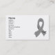 GiftsForAwareness.com comporte une ligne des cartes de visite de conscience avec un ruban gris élégant pour identifier la recommandation pour le cancer du cerveau, la tumeur cérébrale, le diabète, le :maladie de Parkinson et d'autres causes grises de ruban. Idéal à employer pour distribuer votre information de contact pour des événements de conscience, promenades de conscience, collecteurs de fonds, fonctions de conscience et pour favoriser n'importe quand la conscience pour la cause que vous soutenez.
