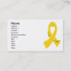 GiftsForAwareness.com comporte une ligne des cartes de visite de conscience avec un ruban élégant d'or pour identifier la recommandation de Cancer d'enfance. Idéal à employer pour distribuer votre information de contact pour des événements de conscience, promenades de conscience, collecteurs de fonds, fonctions de conscience et pour favoriser n'importe quand la conscience pour la cause que vous soutenez.
