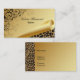 Carte de visite chic élégant fait dans goldtone, avec des graphiques d'un coin inférieur courbé, sur l'avant, avec un motif repéré brun et noir de jaguar, au-dessous de lui. Les flourishes noirs élégants décorent l'avant de la carte. Le texte noir, sur l'avant et le dos, est prêt à personnaliser à vos besoins. Beau tenez la carte qui emballe une grande impression.