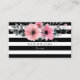 Un design élégant avec un joli motif floral rose avec des rayures noires et blanches chic. Parfait pour un certain nombre de professions, y compris les spas, fleuristes, planificateurs d'évènements, salons, clous. esthéticiennes aromathérapie, cheveux et maquillage et beaucoup plus.