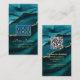 Carte De Visite Elegant Gold & Turquoise Agate, QR Code Logo Pro