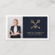 Carte de visite immobilier moderne, élégant et professionnel avec un espace réservé photo qui reflète votre personnalité et faire une grande première impression. Le design présente votre nom en caractères gras manuscrits, le logo et le titre en caractères gras sur un arrière - plan marine et blanc. Personnalisez encore plus avec vos coordonnées, code qr et les médias sociaux à l'arrière.